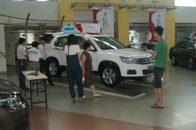 以“品行天下路 感恩惠万家”为主题的银座汽车13周年庆进入到了第三天,上海大众展厅热闹非凡,现场依然火爆。以“店庆特价车”为主题的店庆活动今天在上海大众展厅如期进行,当日共吸引50余批次客户店观车购车。