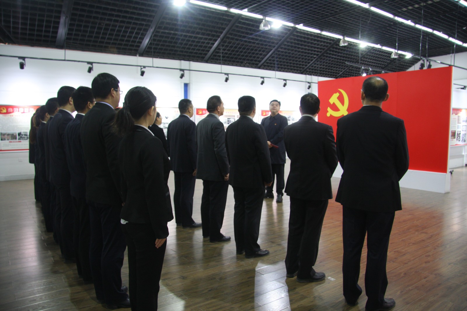 &bsp &bsp &bsp &bsp 陈列馆内悬挂着巨幅中国共产党党旗。面对党旗,公司党委班子成员、党支部书记及2017年新发展的预备党员重温入党誓词。在刘岩领誓下,铿锵有力的宣誓声响彻大厅,让现场所有人都深受感染。宣誓仪式上,刘岩同志代表公司党委对新发展的预备党员表示了衷心地祝贺,并强调,今天我们来到这里学习回顾党的历史、重温入党誓词,就是要更好地不忘初心、牢记使命,牢记习近平总书记的谆谆教诲,以习近平新时代中国特色社会主义思想武装头脑,指导实践,坚决把习近平新时代中国特色社会主义思想落实到各项具体工作中,时刻以一名共产党员标准严格要求自己,发挥党员先锋模范作用,努力做好各项工作,为实现中华民族伟大复兴的中国梦而努力奋斗。